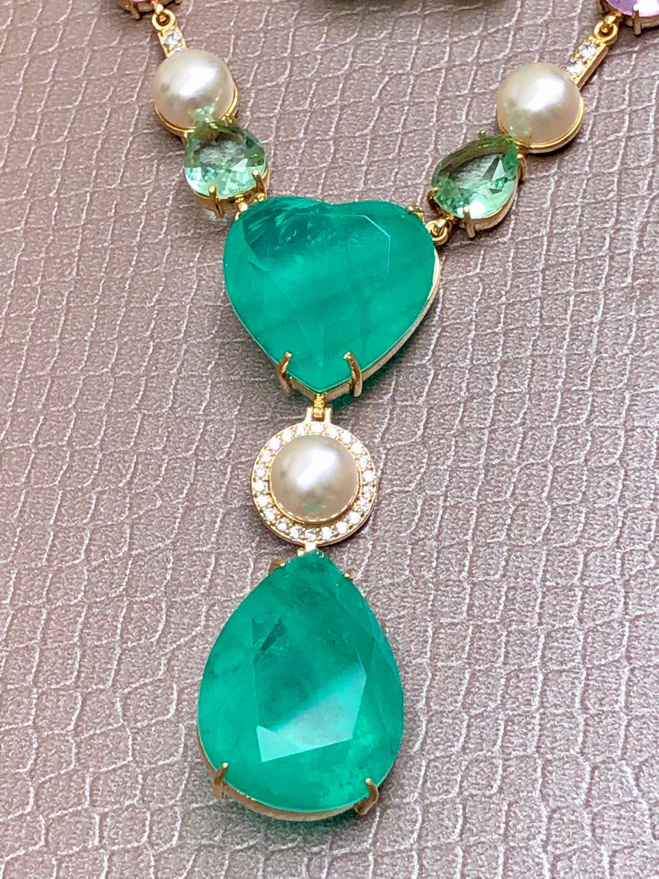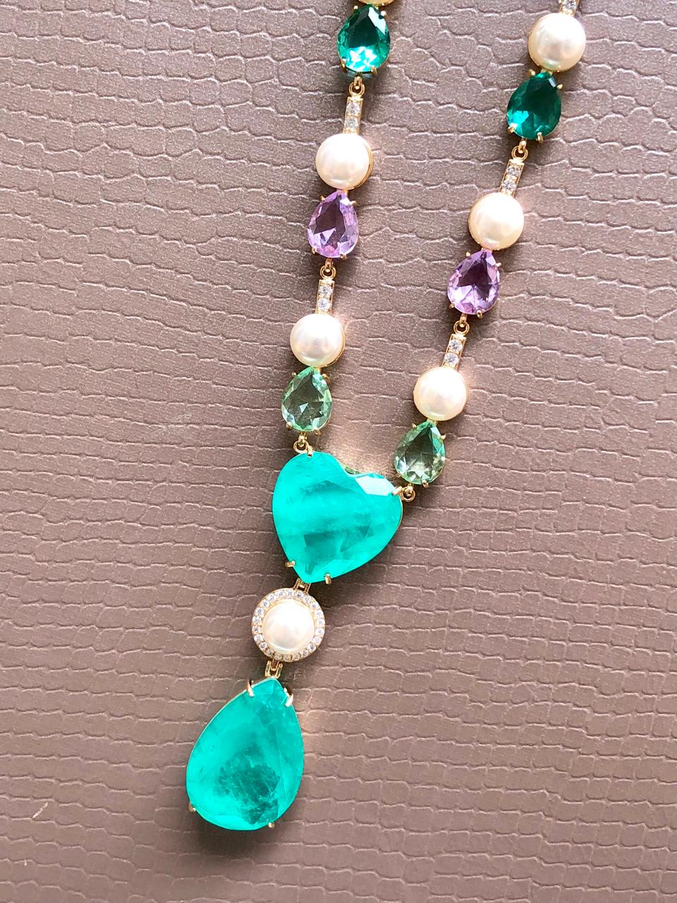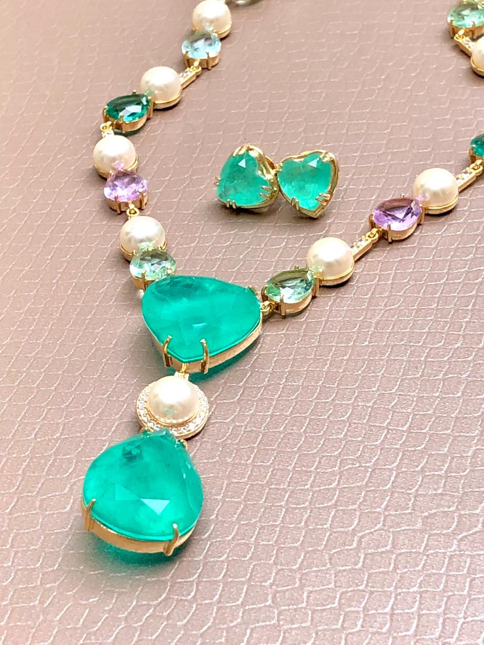 Colar com Pérola Shell, Cristais coloridos . Brincos