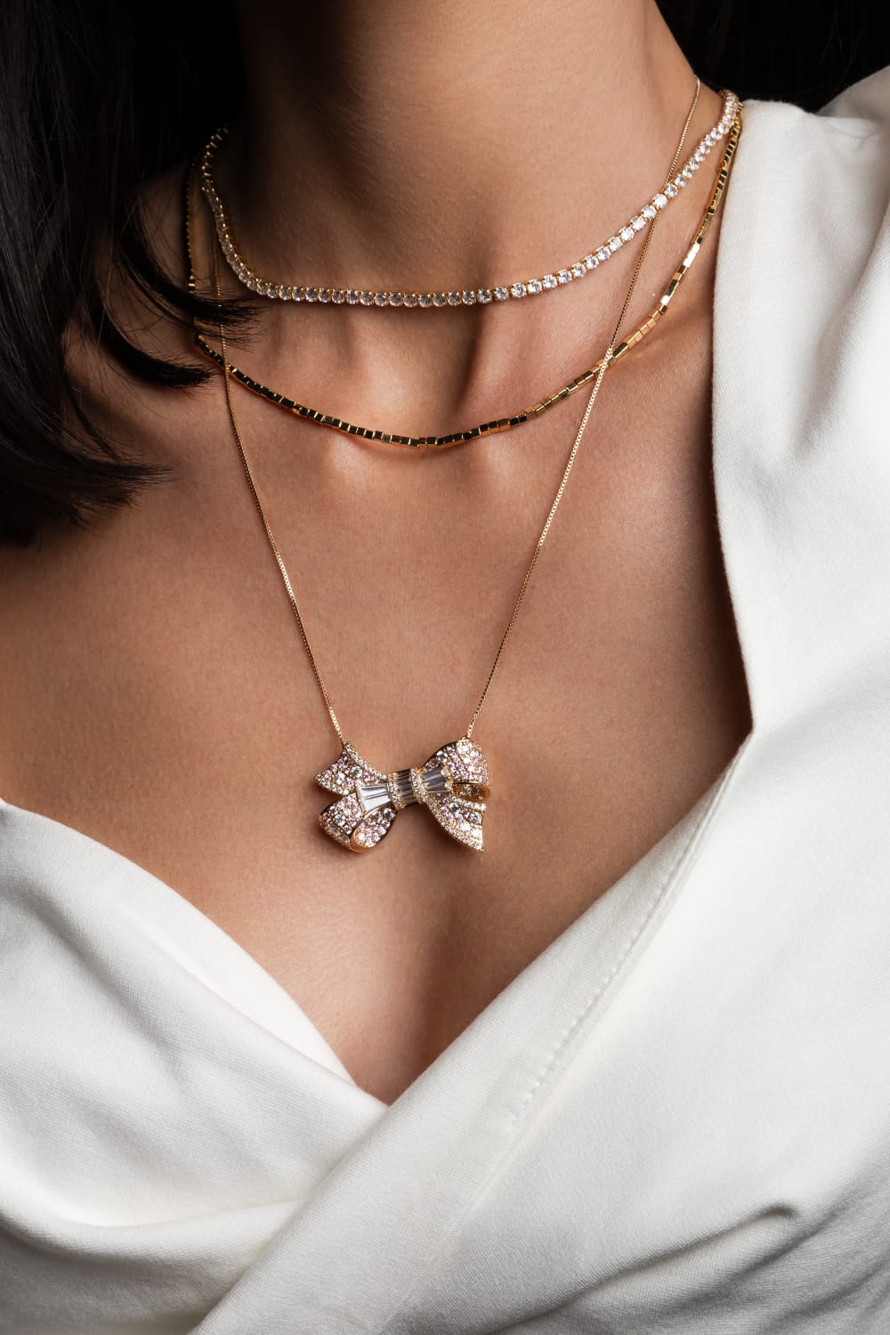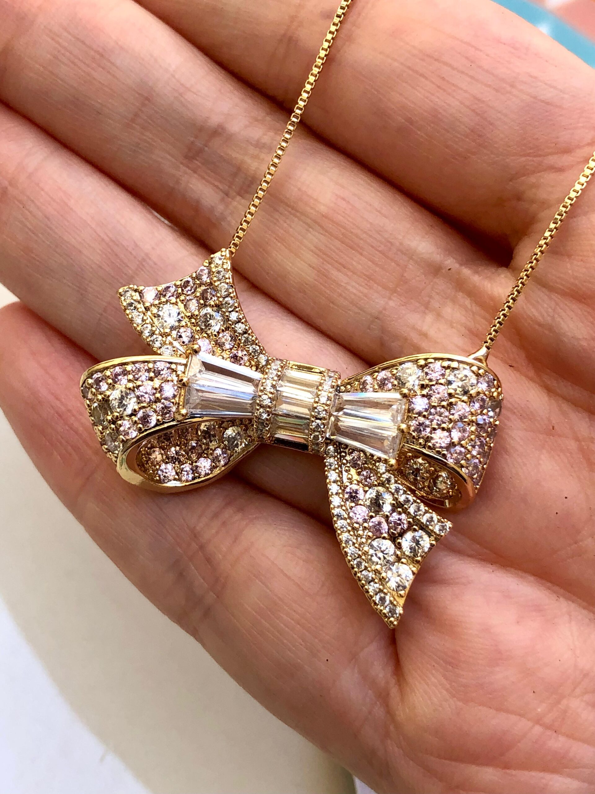 Colar banho de 18k com cravação em Zircônia branca e rosa